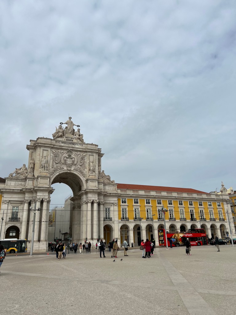 Der Praça do Comércio ist ein imposanten Platz, der zur einen Seite zur Flussmündung des Tejo offensteht. Die Gegenüberliegende Seite bildet der Triumphbogen Arco da Rua Augusta, der auch den Eingang zur Innenstadt von Lissabon stellt.