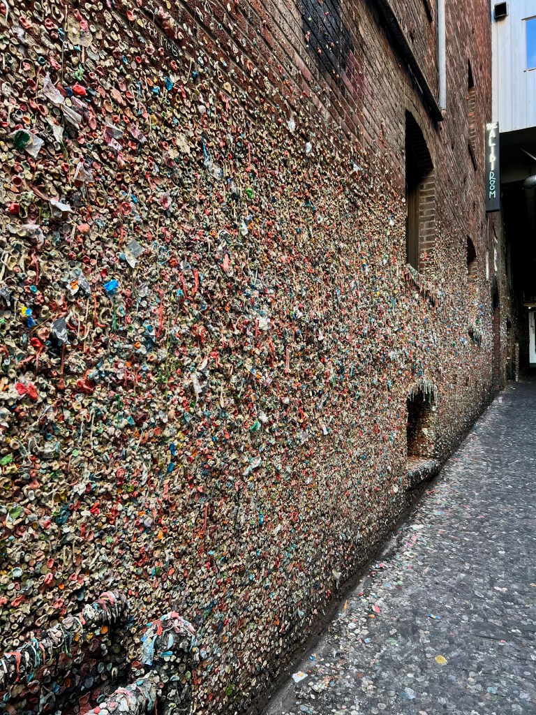 Eine der skurrilsten Sehenswürdigkeiten in Seattle! Die bunte Kaugummi-Wand im Pike Place Market ist mit Tausenden von Kaugummis bedeckt und ein beliebtes Fotomotiv. Ein ungewöhnlicher, aber ikonischer Ort, der definitiv im Gedächtnis bleibt.